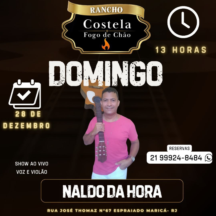 No domingo, dia 28 de dezembro, quem anima o Rancho é Reginaldo da Hora, trazendo um show cheio de energia, repertório agradável e aquele som que combina perfeitamente com um dia em família no campo.